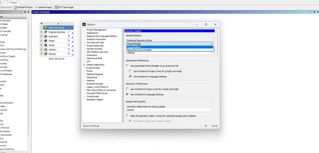After launching ANSYS, it is recommended to configure your geometry editor.